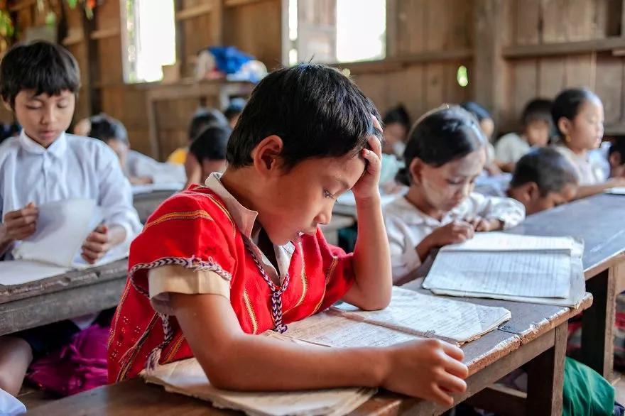 這些作品生動(dòng)的呈現(xiàn)了來自世界各個(gè)國(guó)家的孩子們?cè)诟鞣N條件下學(xué)習(xí)時(shí)的場(chǎng)景。