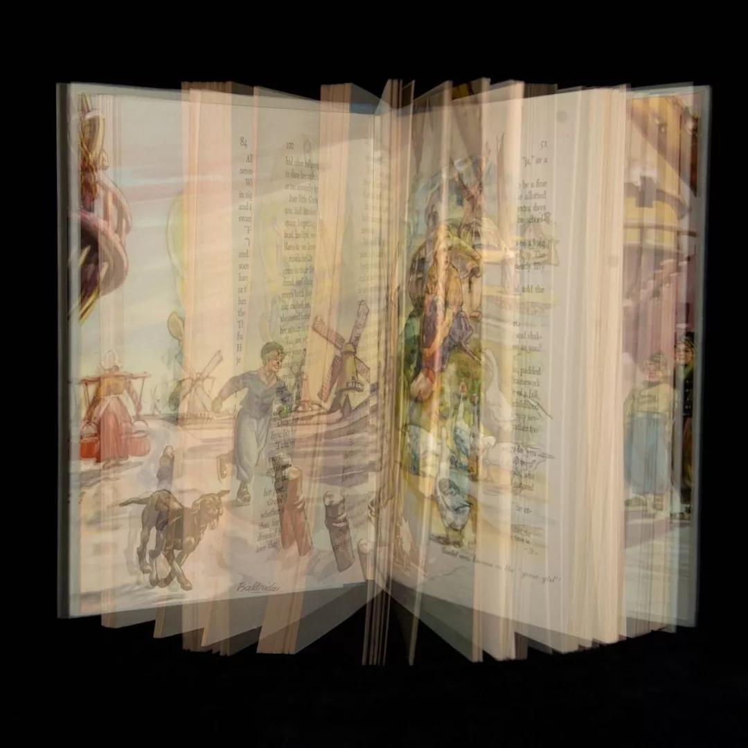 美國南加州的靜物攝影師埃倫·坎托(Ellen Cantor)就是一個特別喜歡閱讀的人,為了向一些童年的經(jīng)典故事致敬,她用多重曝光的手法將快速翻書的過程定格在了一張張靜止的照片中。