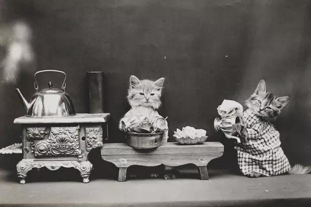 或許你和攝影君一樣好奇,他是否涉嫌虐待、“擺拍”這些小貓咪?在沒有高速快門和感光度的年代,他是如何完成拍攝的?
