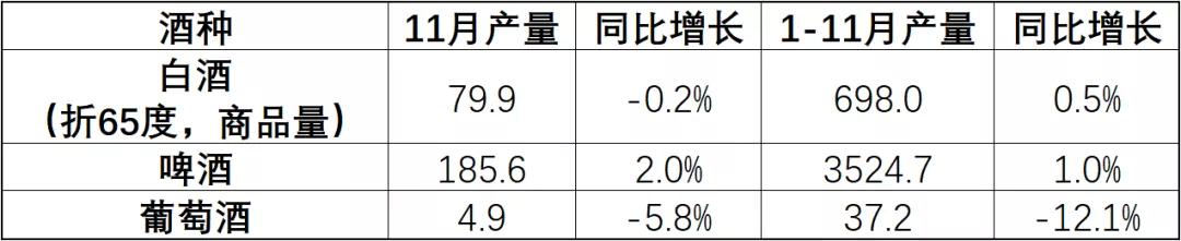 2019年3月至11月,國產(chǎn)葡萄酒當(dāng)月產(chǎn)量同比下滑22.7%、26.3%、14.6%、6.5%、25.0%、26.2%、18.8%、8.7%、5.8%。