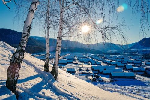 1、登上觀景臺(tái)飽覽禾木晨曦,晨光普照在靜謐的禾木,坐馬拉爬犁看禾木日出,民族服飾體驗(yàn)拍照;