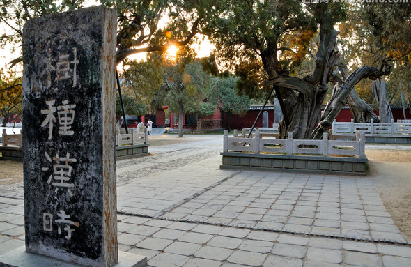 時光飛逝,轉(zhuǎn)眼到了民國年間,軍閥孫良誠的部隊也駐扎在岱廟里,其中一個小士兵聽說了這個故事后,也要在旁邊的連理柏上試上一試,結(jié)果還沒來得及行動呢,風(fēng)聲傳出去被當(dāng)時的道長尚士廉?dāng)r住,報告給了他的長官。偏巧這位長官是一位敬神之人,命人把小士兵拖來用皮鞭抽了一頓(屬下冒犯神靈這還了得,闖禍的小士兵自然是逃躲不了皮肉之苦),小士兵懷恨在心,等到晚上月黑風(fēng)高無人之際,他把他的棉被沾滿煤油塞到連理柏中的一株,一把火燒毀了其中一株,當(dāng)年乾隆皇帝來到泰山時看到這株柏樹雙干而立,古柏參天,被它不屈的精神折服深深的印在腦海里,乾隆皇帝回到皇宮后憑借印象把它描繪了出來,乾隆皇帝先后來泰山總共留下146首詩唯獨留下這一副畫,我們現(xiàn)在看到正中的這個《御制漢柏圖贊》碑就是當(dāng)年乾隆皇帝憑借記憶畫下的畫,不幸果然被乾隆爺言中,現(xiàn)在的連理柏已經(jīng)是一生一死,生離死別,漢柏?zé)o言,但我們相信他們會把生死相隨的承諾一直堅守到永遠(yuǎn)。