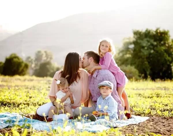 表達愛最直接的方式是什么?當然是親吻啦~也是明星拍全家福常用的套路哦!