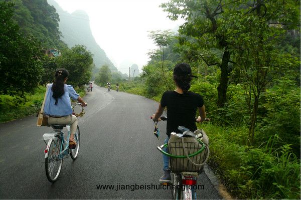 ?、醋钤娨猓鹆帧滋煜碌纳剿蠢粘鲆环赖漠嬀?,乘一葉竹筏漂蕩于漓江之上,猶如置身百里畫廊。