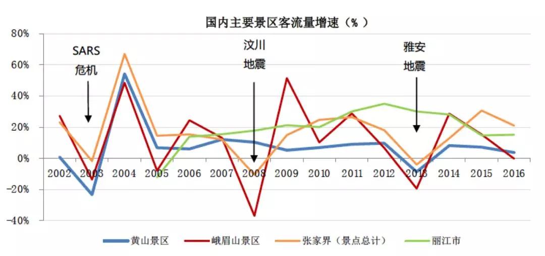 ▼SARS期間國內(nèi)主要景區(qū)客流量增速