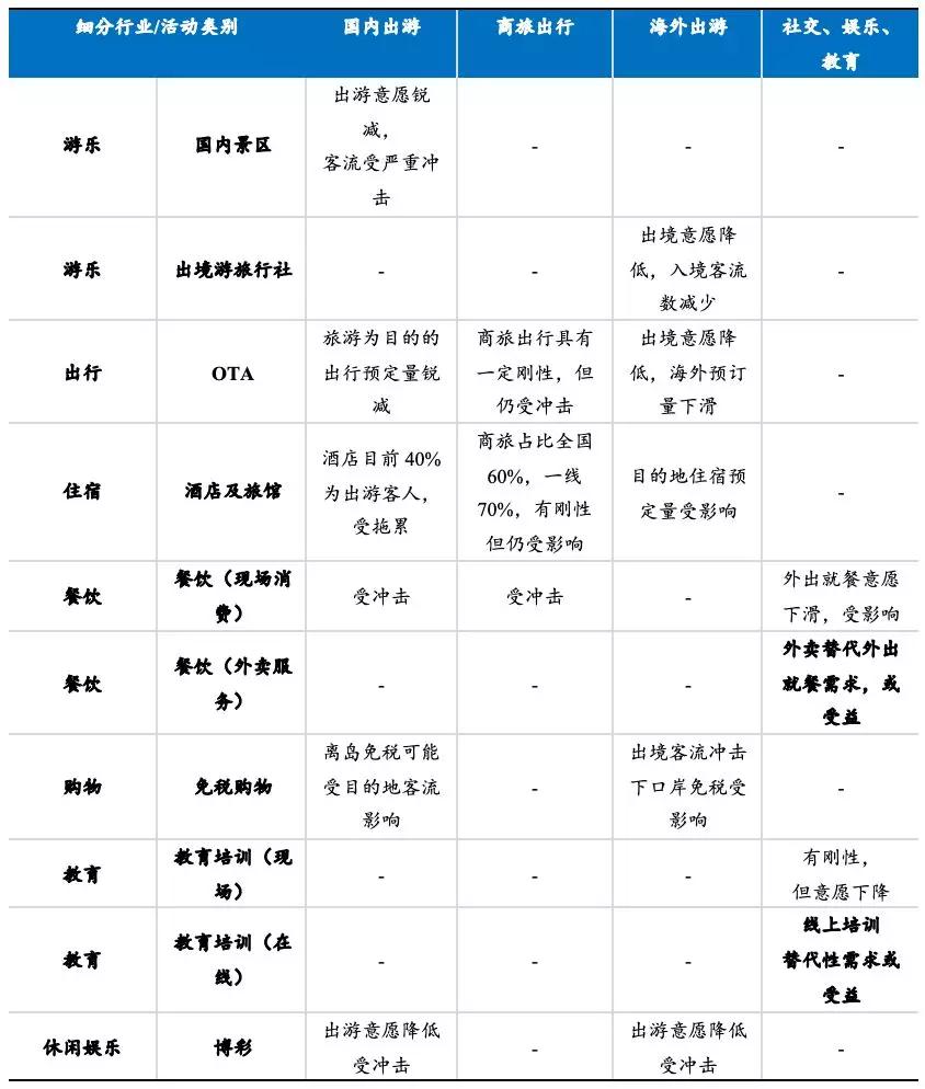 這是因為,旅游行業(yè)中的幾乎所有細分領(lǐng)域均涉及人群聚集與社交。不同于其他危機事件僅對某具體細分影響,例如國際關(guān)系僅影響出入境客流,流行性傳染病窗口期對旅游行業(yè)會構(gòu)成全面沖擊。