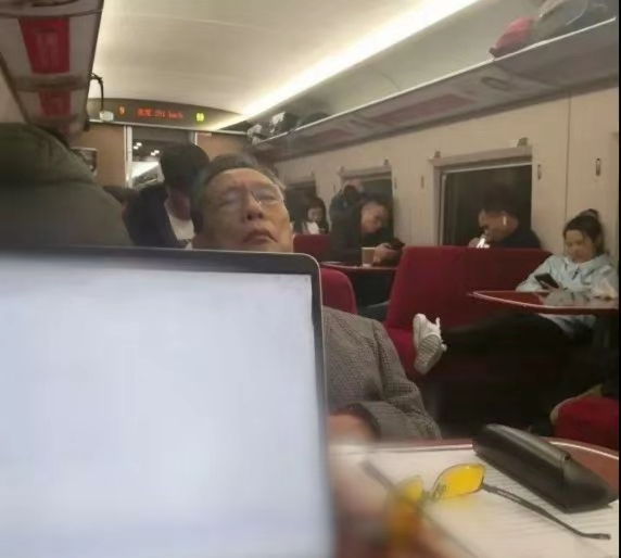 1月18日,84歲的鐘南山從廣州出發(fā)趕往武漢。當(dāng)天航班已買不到機(jī)票,他擠上了17點開往武漢的高鐵列車。由于春運高鐵票緊張,他被安頓在了餐車一角,剛一落座便拿出文件研究。23點左右到達(dá)武漢住處,簡單聽取了武漢方面的情況后才結(jié)束一天的工作。