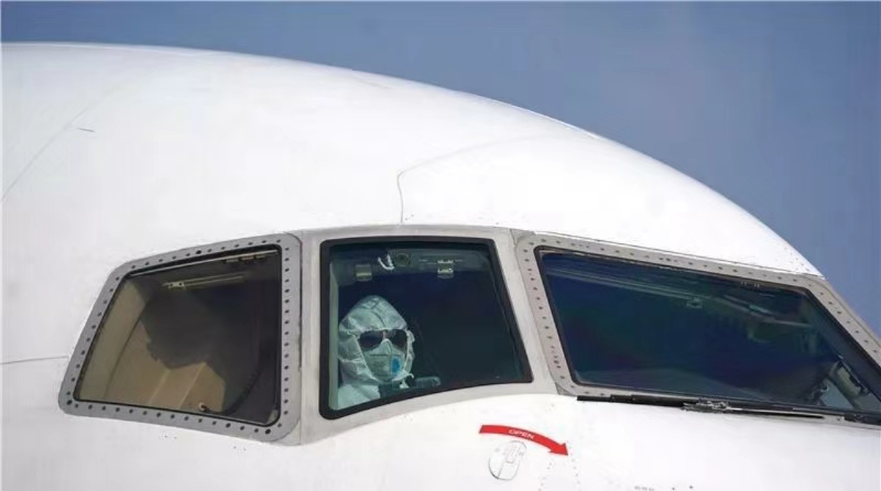 1月28日,在武漢天河國際機(jī)場,一架貨運飛機(jī)駕駛員將飛機(jī)停至卸貨區(qū)。