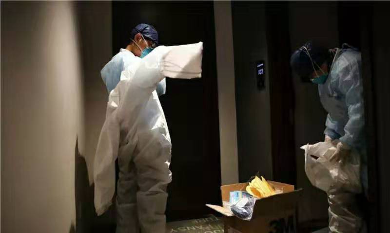 1月26日,上海一隔離點,醫(yī)療人員在穿防護(hù)服。