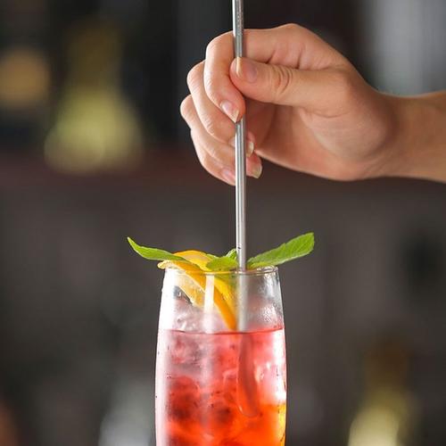 4、碎冰棒:用于搗碎冰塊、水果、其他輔料等。有多種形狀,常見材料有不銹鋼、塑膠。開酒吧必備,家中自調(diào)可選用類似工具代替。