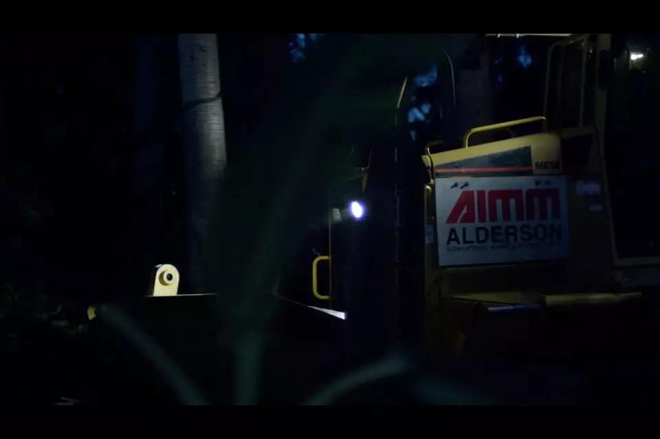 一輛重型推土機(jī)推倒了叢林里的樹木(注意LOGO,一號(hào)病人簽的文件,和空無一人的寫字樓里都出現(xiàn)了這個(gè)LOGO。暗示人類公司的開發(fā)活動(dòng)對(duì)大自然的侵犯,最終導(dǎo)致了自身的災(zāi)難)