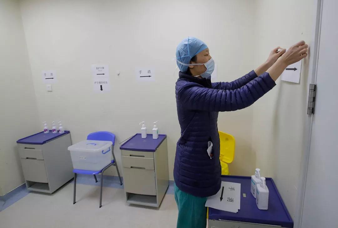 來自北京老年醫(yī)院的一位醫(yī)生,在清潔區(qū)穿完防護(hù)服準(zhǔn)備進(jìn)入半污染區(qū)。