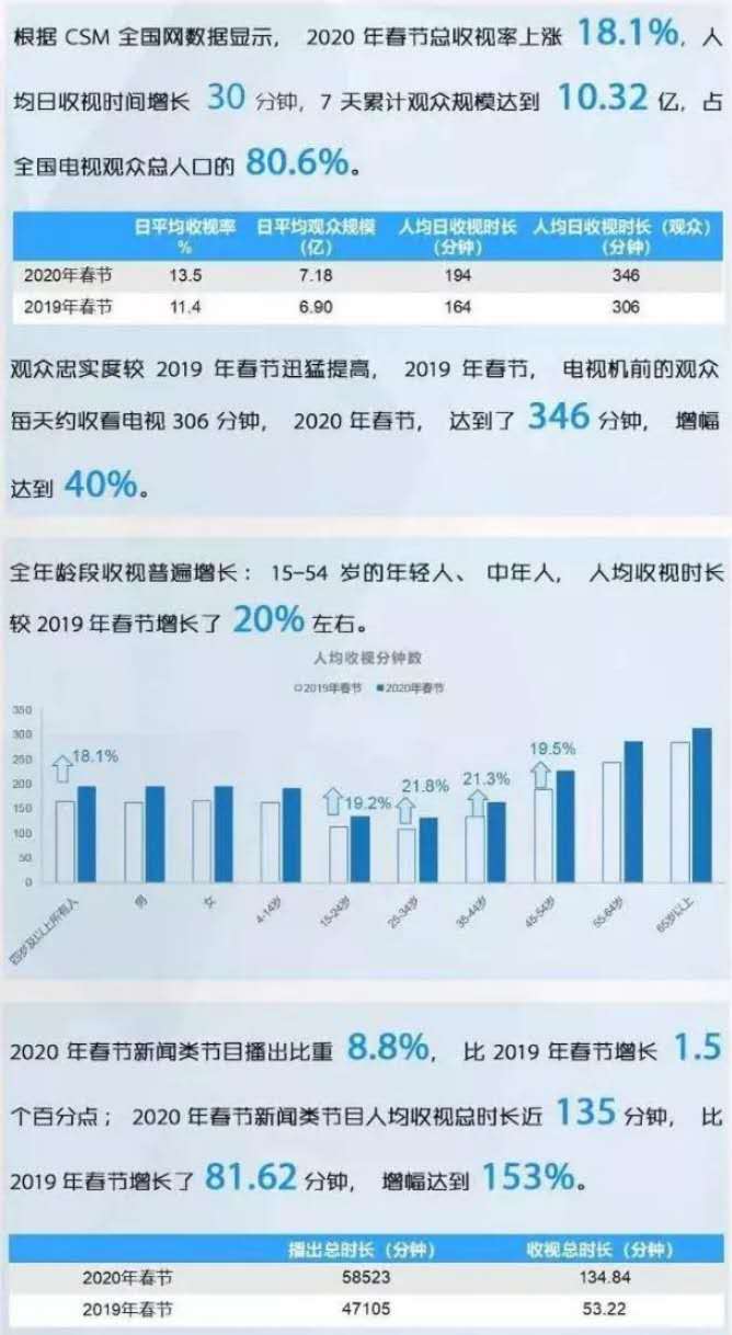 10、電視新聞節(jié)目人均收視總時(shí)長增153%,省級衛(wèi)視收視率漲23%