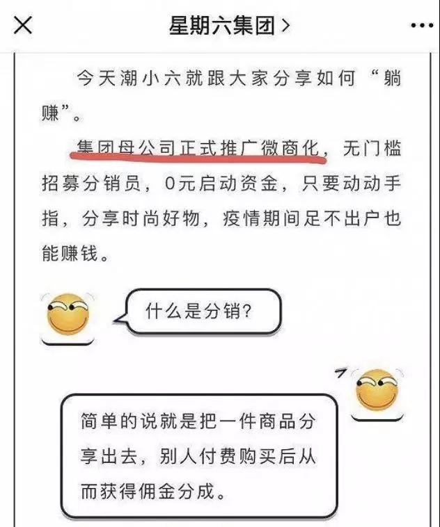 星期六股份有限公司宣布:“集團母公司正式推廣微商化,無門檻招募分銷員,0元啟動資金,只要動動手指,分享時尚好物,疫情期間足不出戶也能賺錢?!?