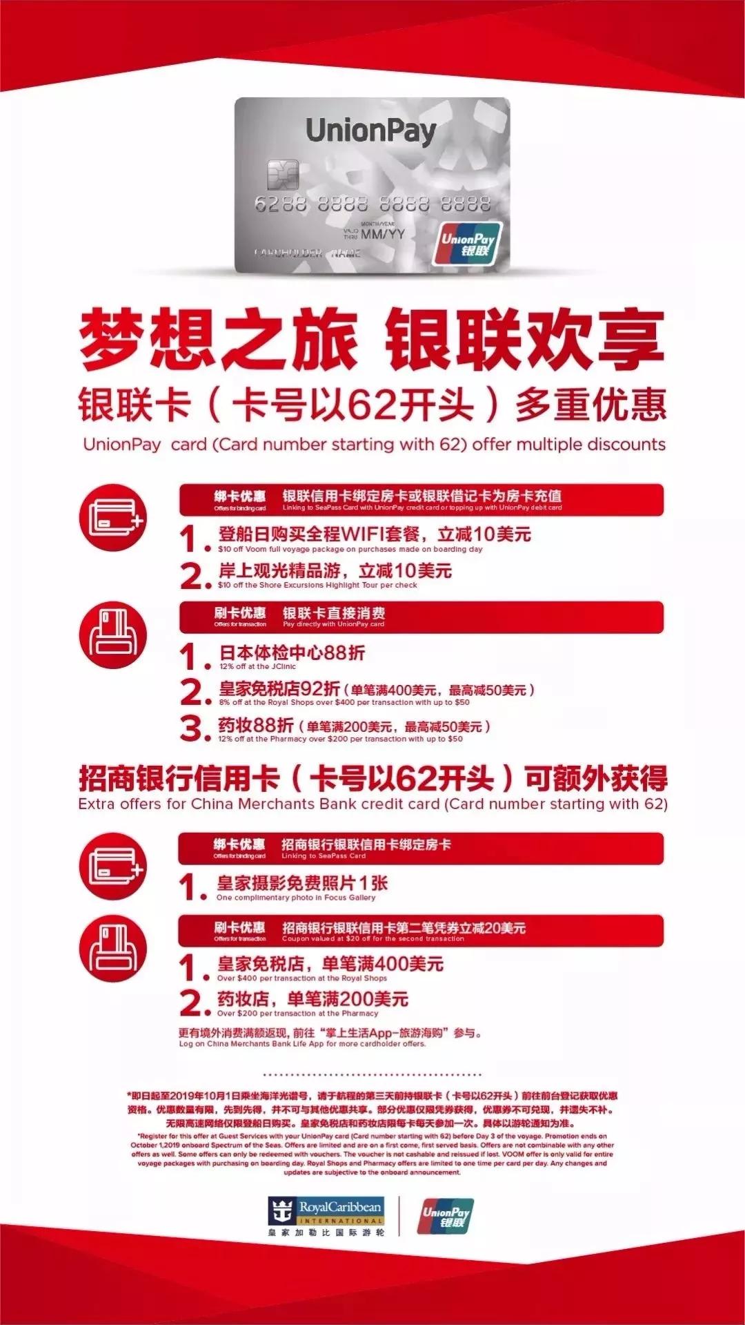 免稅店均支持支付寶和微信支付,現在上船還可以享受銀聯62卡的專屬優(yōu)惠。
