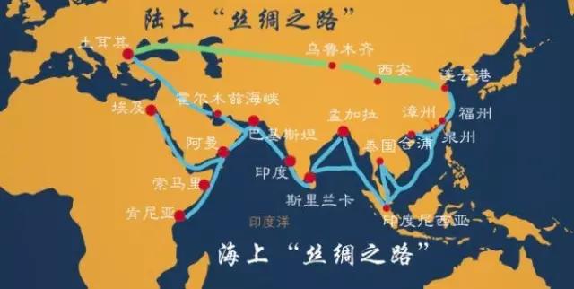 將亞歐非三個(gè)大陸整合起來(lái)的一路一帶戰(zhàn)略規(guī)劃圖