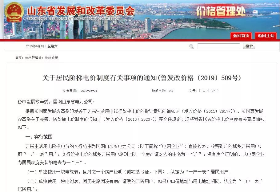 省發(fā)改委發(fā)布了《關(guān)于居民階梯電價(jià)制度有關(guān)事項(xiàng)的通知》(魯發(fā)改價(jià)格〔2019〕509號(hào))