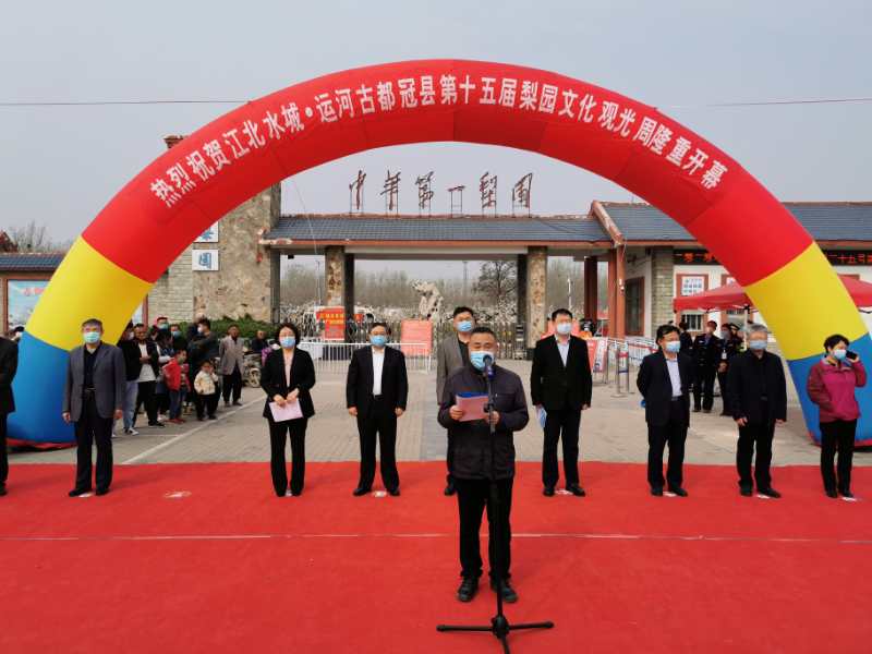 出席今天開幕式的領(lǐng)導(dǎo)和嘉賓有:聊城市市委宣傳部副部長薛兆立、聊城市文化和旅游局局長劉光輝、冠縣縣委副書記、縣長崔新樂、聊城市文化和旅游行業(yè)協(xié)會(huì)會(huì)長王金福、冠縣人大常委會(huì)副主任張則玉、冠縣人民政府副縣長吳景博、冠縣政協(xié)副主席蘇興玲、聊城市文化和旅游行業(yè)協(xié)會(huì)常務(wù)副會(huì)長兼秘書長宋文江、聊城市文化和旅游局產(chǎn)業(yè)科科長韓銀亮、冠縣文化和旅游局局長左華、冠縣旅游發(fā)展服務(wù)中心主任齊俊林,以及省、市、縣的新聞媒體代表、各地游客代表、旅游行業(yè)單位代表及部分特邀嘉賓。 首先,冠縣人民政府副縣長吳景博同志對(duì)冠縣旅游發(fā)展現(xiàn)狀進(jìn)行了介紹,對(duì)梨園觀光周系列活動(dòng)進(jìn)行了解讀;聊城市文化和旅游行業(yè)協(xié)會(huì)會(huì)長王金福同志向開幕式發(fā)表致辭;聊城市文化和旅游局局長劉光輝宣布開幕。
