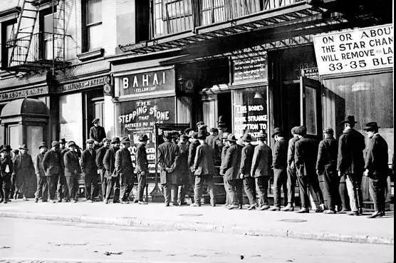 所以,1929年,世界大戰(zhàn)結(jié)束才10年,真正的經(jīng)濟危機如約而至。破壞力強悍到世界大戰(zhàn)都只是預(yù)演。美國的工業(yè)水平幾個月就倒退到19世紀(jì),銀行業(yè)破產(chǎn),410億存款去擠兌60億現(xiàn)金,總統(tǒng)開支票都兌不到紙幣。德國失業(yè)人口加半失業(yè)人口占了總數(shù)的2/3。第一次世界大戰(zhàn)期間,英國咬牙頂住了金本位,等到大蕭條來也也得廢除。從1929年到1933年,全世界再次以為資本主義要結(jié)束了。