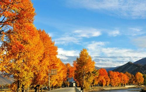 金黃的柏楊,連綿起伏的山巒,