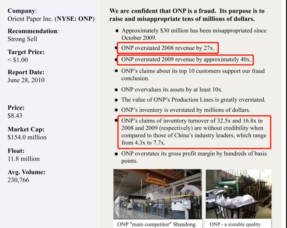 在對東方紙業(yè)進(jìn)行全方位的調(diào)查之后,2010年6月,布洛克團(tuán)隊(duì)發(fā)布了一份長達(dá)30頁的報(bào)告。