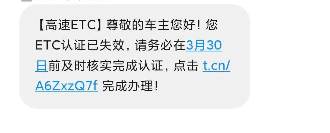 ETC不存在過期再認(rèn)證,針對(duì)“ETC認(rèn)證失效”類的短信很可能是騙子群發(fā)的釣魚短信,短信中的鏈接其實(shí)是騙子用來(lái)套取個(gè)人信息,從而盜取卡內(nèi)資金的手段,請(qǐng)廣大市民切勿相信!