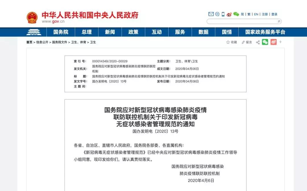 國(guó)務(wù)院應(yīng)對(duì)新型冠狀病毒感染肺炎疫情聯(lián)防聯(lián)控機(jī)制關(guān)于印發(fā)新冠病毒無(wú)癥狀感染者管理規(guī)范的通知