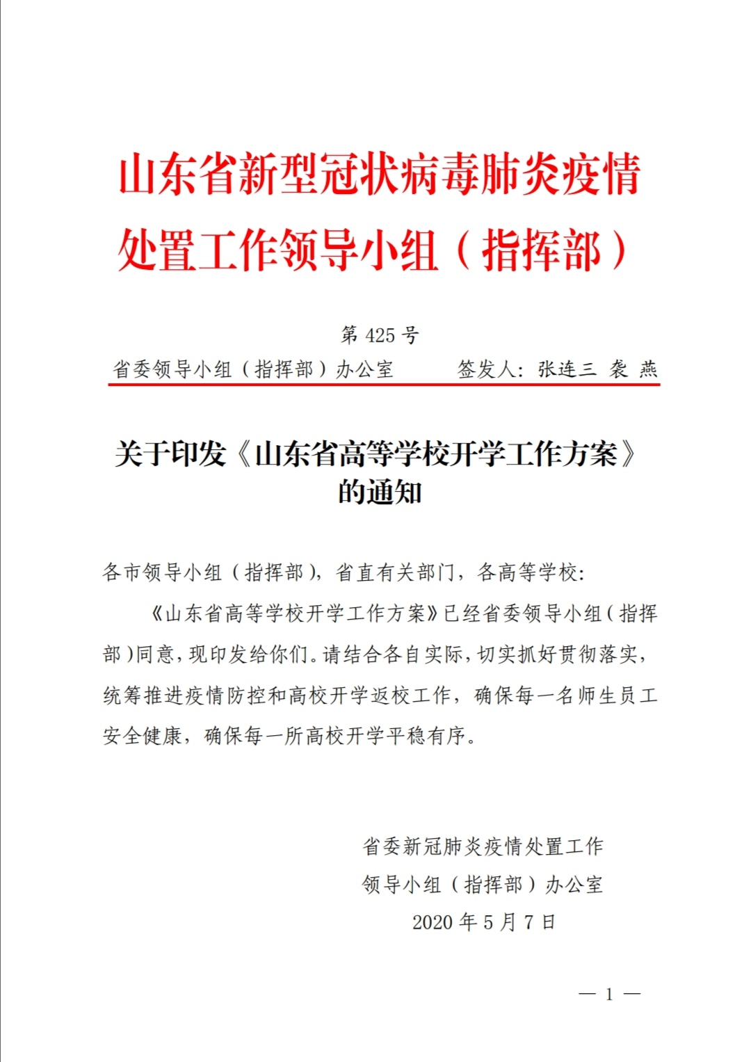 關(guān)于印發(fā)《山東省高等學(xué)校開學(xué)工作方案》的通知
