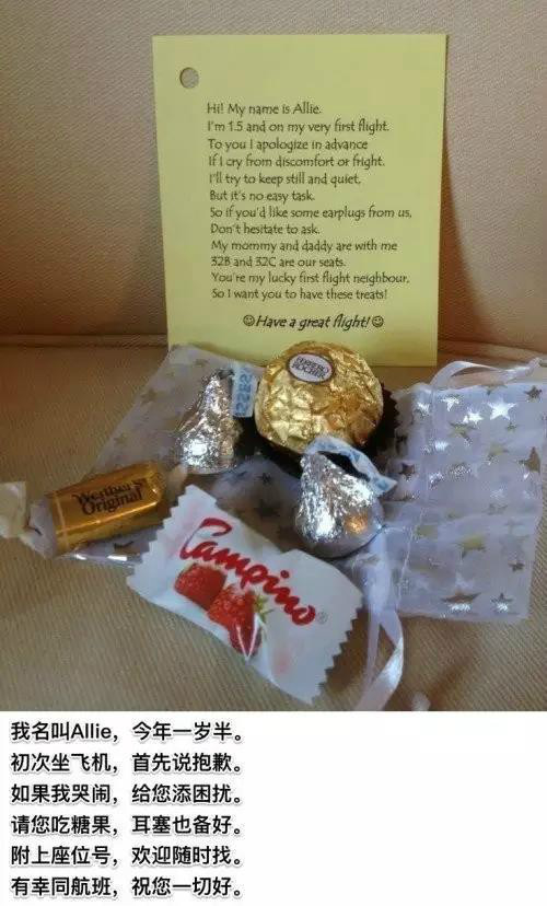 寶寶哭鬧的話難免周圍的乘客會有意見,爸爸媽媽們可以提前準(zhǔn)備一些小糖果小餅干或者是耳塞之類的,在飛機起飛前送給周圍的乘客。