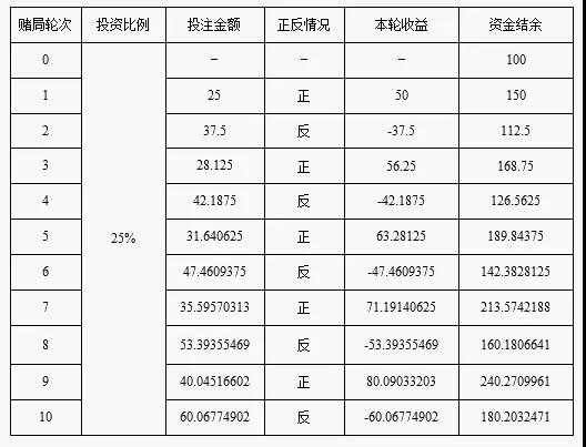 計算后每次下注比例為當(dāng)時總資金的25%,這樣就能獲得最大收益。