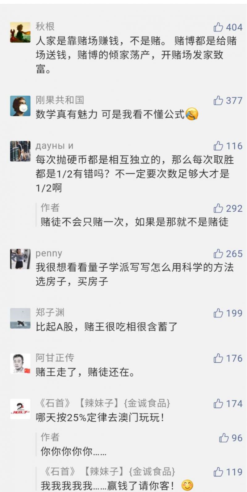 事實上,你以為自己看到了50%的概率,把游戲看得透徹明白,殊不知,你看到了概率,卻沒有看到背后的陷阱:大數(shù)定律。