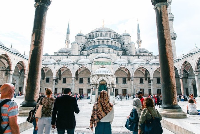 耗時(shí)七年建成的蘇丹艾哈邁德清真寺,又稱藍(lán)色清真寺,是伊斯坦布爾的地標(biāo)建筑。墻壁使用了土耳其瓷器名鎮(zhèn)燒制的藍(lán)彩釉貼瓷,以白色為底,刻有豐富的花紋圖案,使得整個(gè)清真寺內(nèi)都充滿了藍(lán)色。清真寺是伊斯坦布爾最大的圓頂建筑,四周建有六座宣禮塔,是全世界唯一擁有六座高塔的清真寺,世界十大奇景之一。