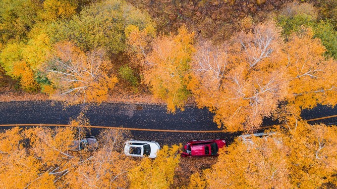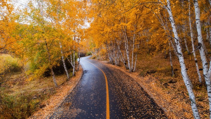 很多人都認為金秋九月的草原都是枯黃的草,毫無亮點,但是唯獨烏蘭布統(tǒng)草原與眾不同,9月初,軍馬場開始慢慢變換色彩,從茵茵綠草慢慢變得金黃遍野,而秋日的白樺林是最值得期待的,她宛若一個亭亭玉立的少女,白色的樹干筆直俊秀,金黃的葉子如蝴蝶翩翩起舞。10月秋風蕭瑟,樹葉紛紛凋零,滿地金黃,此時來烏蘭布統(tǒng)又是另一番景象了 。一般情況下,每年的9月中旬到十一黃金周,都是壩上流光溢彩之最的時候,看漫山遍野,層林盡染,斑斕的色彩讓人心醉。