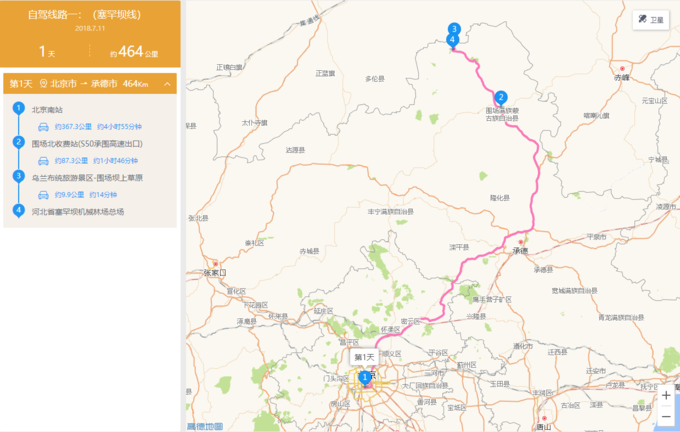北京京承高速—圍場北或南出口下—御道口風景區(qū)—塞罕壩國家森林公園—界河—烏蘭布統(tǒng)