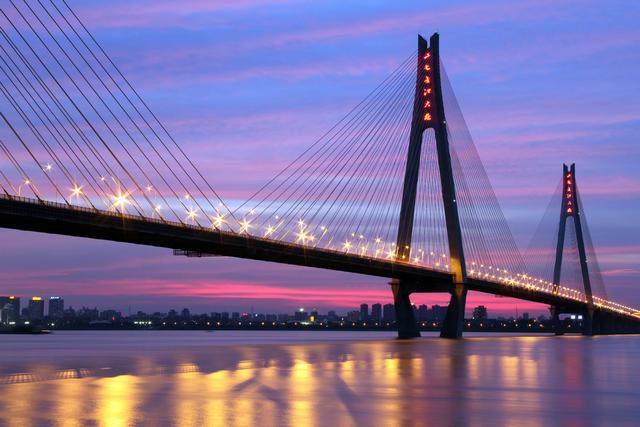 武漢二七長江大橋由中鐵大橋勘測設(shè)計院設(shè)計,為三塔斜拉橋,兩個主跨均為616米,是世界上最大跨度的三塔斜拉橋和世界上最大跨度的結(jié)合梁斜拉橋 總長度約6.5公里,包括二七長江大橋主體工程2922米及兩岸疏解配套工程3585米 此橋雄偉壯觀、兩岸風景優(yōu)美,是旅游、休閑的好去處。