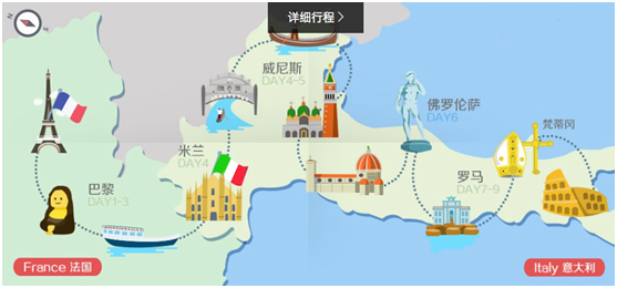 達(dá)人設(shè)計(jì)思路:此條線路的城市法國(guó)和意大利最經(jīng)典的城市,如果你首次前往法意,選擇這個(gè)玩法是最合適的。巴黎進(jìn),羅馬出,機(jī)票價(jià)格便宜,中途經(jīng)過(guò)時(shí)尚之都米蘭,水城威尼斯,文藝復(fù)興之都佛羅倫薩。