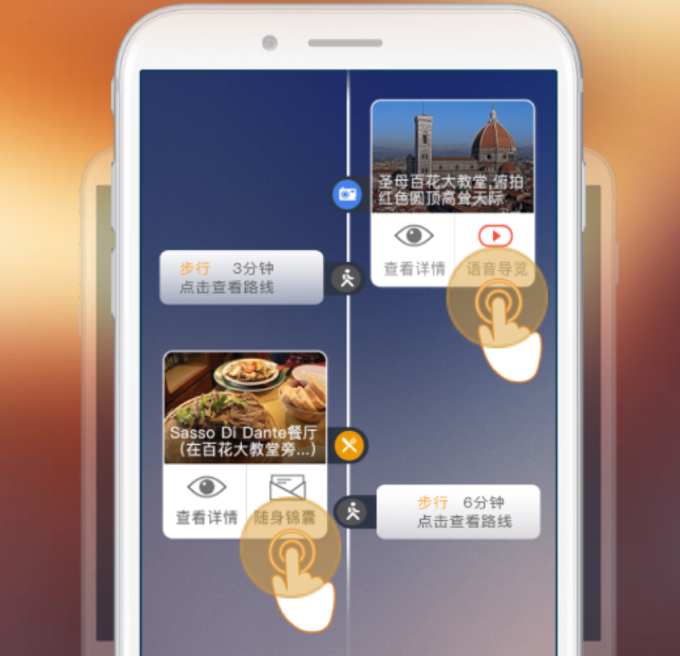 3、APP智能導(dǎo)航:再無(wú)需拿著厚重的A4紙出行,我們有智能APP導(dǎo)航幫你指引每天的行程路線,包括每天的游玩項(xiàng)目,景點(diǎn)之間的步行路線、乘車路線、時(shí)長(zhǎng)全部提前規(guī)劃好,抵達(dá)目的地后只需輕輕一點(diǎn)跟著導(dǎo)航走,就能抵達(dá)自己的游玩目的地。