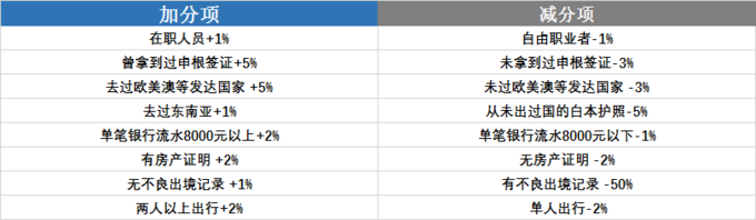 目前全國(guó)辦理荷蘭簽證平均出簽率約85%,請(qǐng)你根據(jù)下表,以85%為基數(shù),算算自己的出簽率吧: