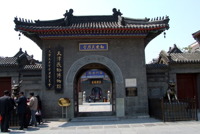 天后宮位于古文化街中心,也是古文化街古跡的核心,祭祀保佑出海遠(yuǎn)航平安的天后娘娘,已有600余年歷史?,F(xiàn)在是天津民俗博物館的所在地,館內(nèi)介紹了天津城歷史、民俗,陳列著明代天津城磚、清代漕運模型、清代水機(jī)等文物。