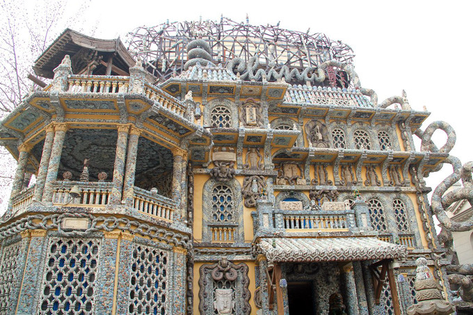 瓷房子是一座用數(shù)萬件古董瓷片裝修而成的法式洋樓,是天津市的地標(biāo)建筑之一。建筑由瓷房主人張連志親自設(shè)計,所用瓷器和瓷片年代從漢代一直跨越到清代,中國所有種類的官窯、民窯瓷幾乎都可以在這里看到。建造時使用了20多噸水晶石與瑪瑙,4000多件古瓷器,300多尊歷代石雕造像等,被人們稱為一座價值連城的“中國古瓷博物館”。出口所在的小房間有“鎮(zhèn)館之寶”,不要錯過了,這間房間不允許照相。