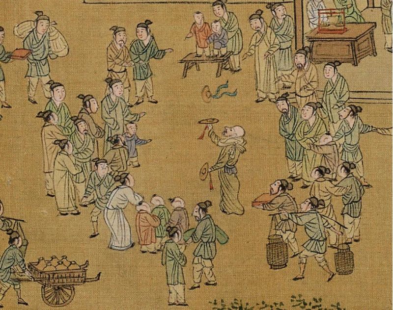 繁雜的流動攤販也給城市管理帶來了一定的難題,比如《武林舊事》記載,南宋臨安街頭即有擺所謂“美人局、柜坊賭局、水功德局”的游手,乃至賣假貨的“白日賊”、劫人財(cái)物的“覓貼兒”。