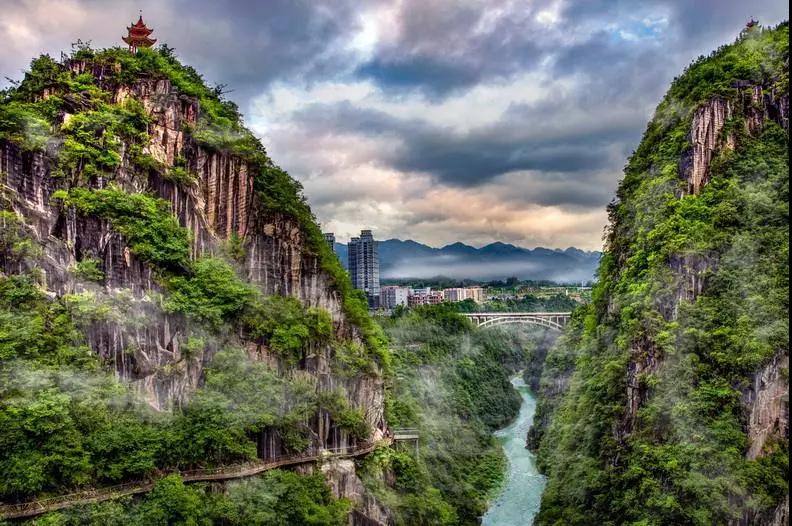 餐后集合趕往【酉陽(yáng)桃花源景區(qū)】,因自古武陵山地區(qū)“蠻不出洞、漢不入境”的皇命戒律,景區(qū)在武陵大山中沉睡了千年,被廣泛認(rèn)為是陶淵明筆下《桃花源記》原型地。呈現(xiàn)著“其中往來(lái)種作,男女衣著,悉如外人,黃發(fā)垂髫,并怡然自樂(lè)”絕美的“世外桃源”景觀。然后我們集合回返重慶。