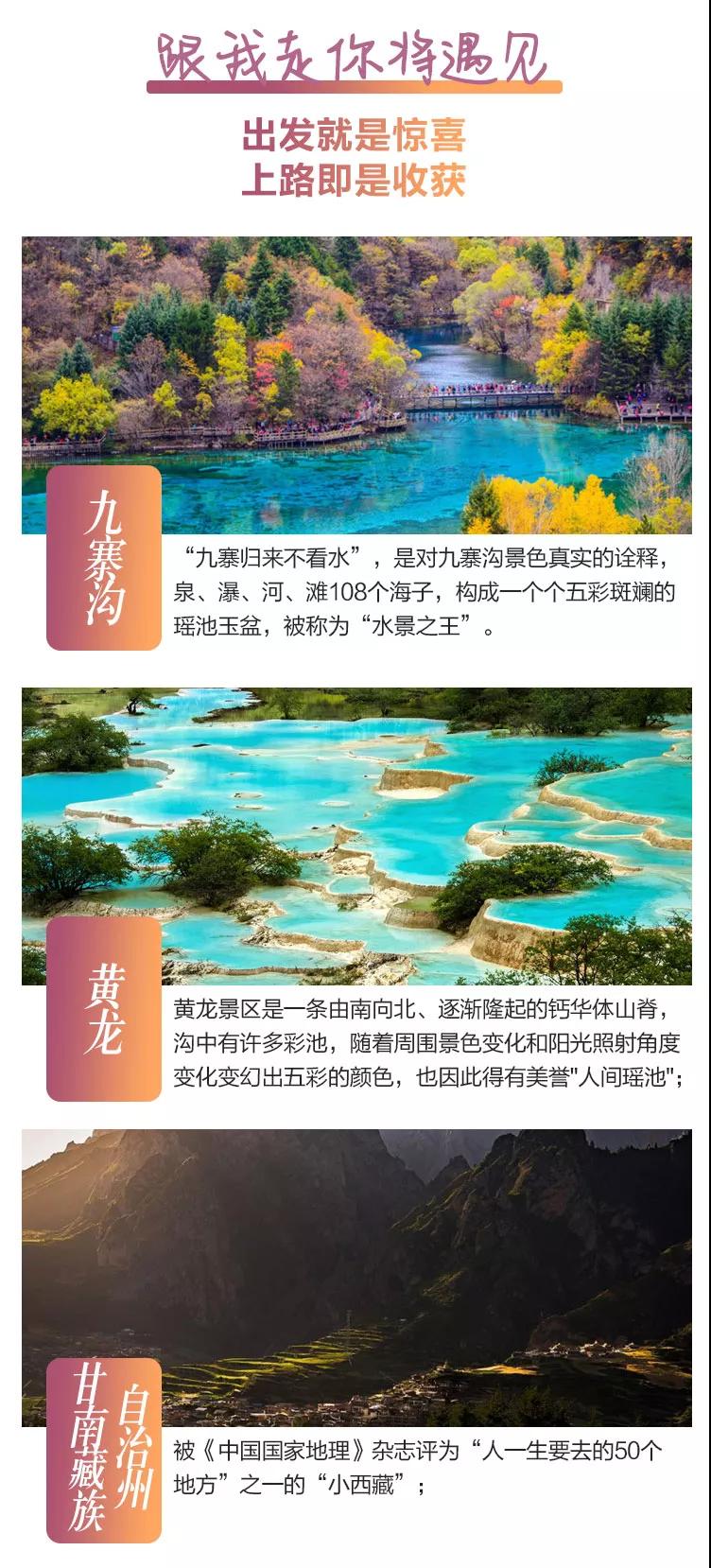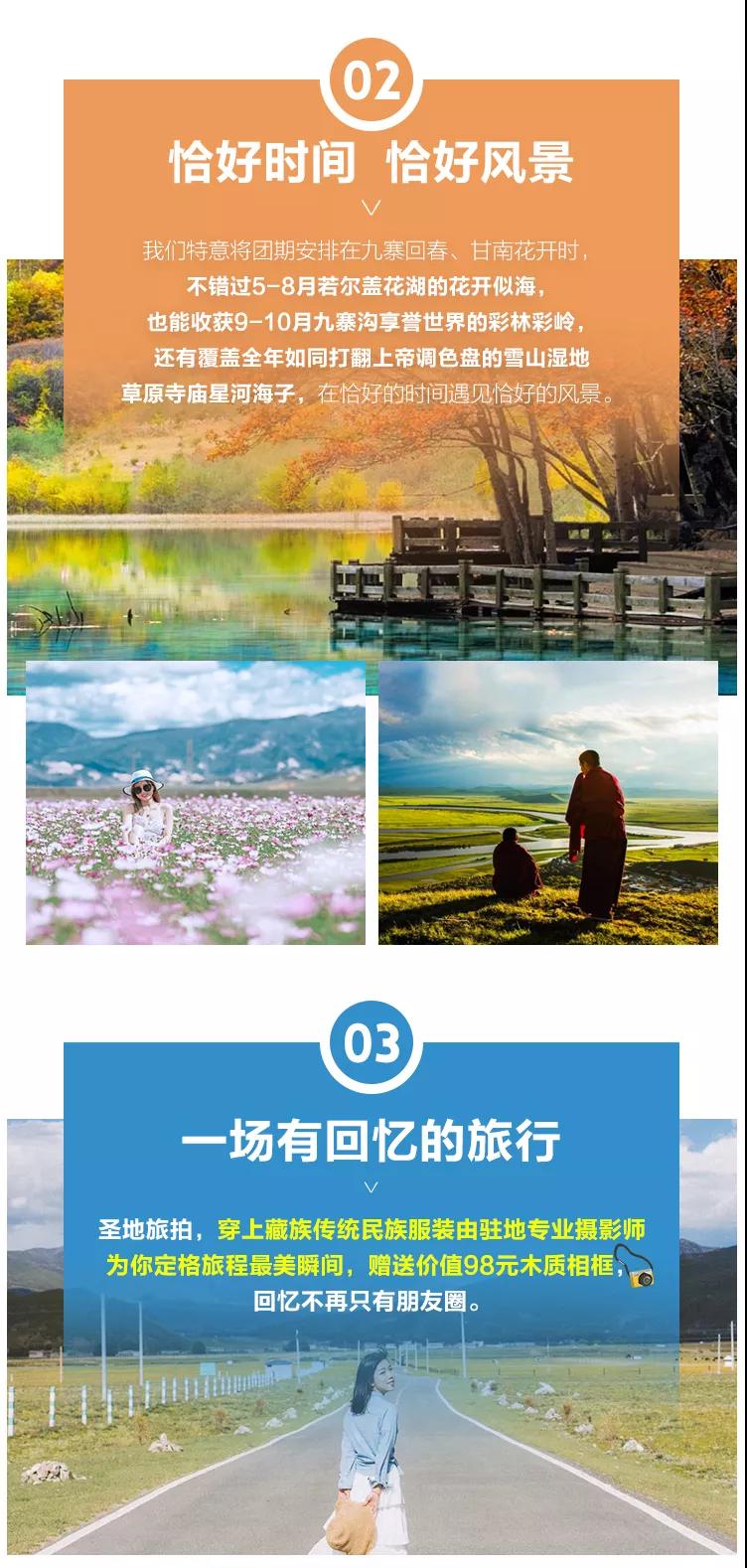 3、九寨溝面積較大游客需求不一,因此主要以游客自助游形式游覽,如無導(dǎo)游陪同望您諒解。游覽開始前導(dǎo)游會與您約定好集合時間,請務(wù)必按時到達(dá)指定地點(diǎn),避免耽誤大家接下來的行程;