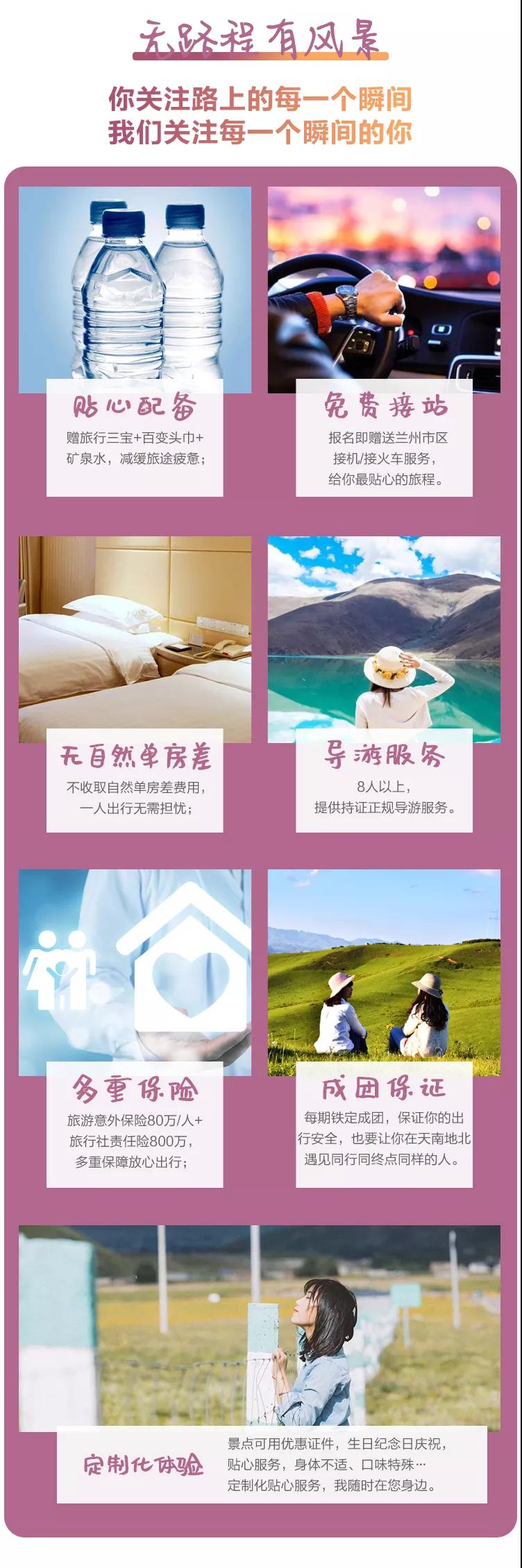 5、該線路為特種線路,當(dāng)?shù)鼐频昙安惋嫍l件無法與城市相比,請游客做好心理準(zhǔn)備;賓館內(nèi)無牙膏牙刷、拖鞋等一次性衛(wèi)生用品,請自備個人衛(wèi)生用品;沿途商店較少,民俗習(xí)慣亦有不同,游客可自備咸菜、小吃、干糧等零食,以備不時之需。