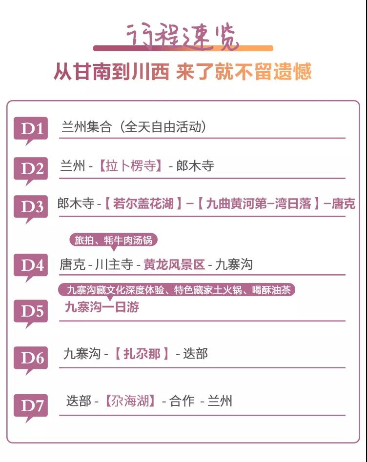 1、花湖景區(qū)暫未確定開放時間,如出發(fā)日景區(qū)未開放,則臨時調(diào)整為游覽若爾蓋草原,望您諒解。