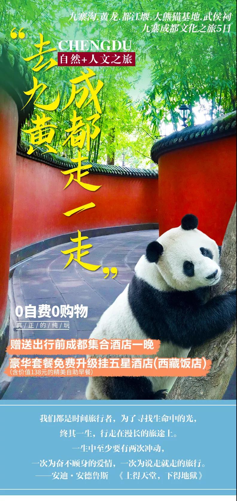 門票:九寨溝門票、黃龍風(fēng)景區(qū)門票、成都熊貓基地門票、武侯祠門票、都江堰門票;