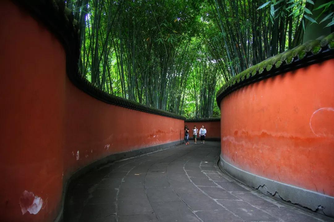 用過午餐后我們前往全世界影響最大的三國(guó)遺跡博物館——【武侯祠】(漢昭烈廟),它是中國(guó)唯一的一座君臣合祀祠廟和最負(fù)盛名的諸葛亮、劉備及蜀漢英雄紀(jì)念地。規(guī)模宏大的武侯祠里廣植松柏竹木,寧靜肅然,其中又以一道網(wǎng)紅的景色“紅墻竹影”最為人稱道,紅墻夾道蜿蜒延伸而去,兩旁青竹蔥蘢,陽光下竹影疏疏,斑駁映畫紅墻之上,走在這里趁人少的時(shí)候立馬按下快門,直出大片。