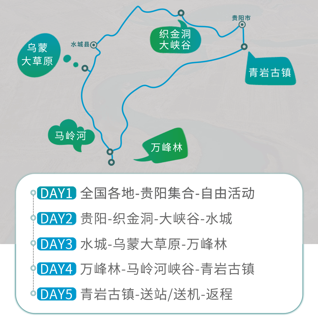門(mén)票:織金洞門(mén)票(含景交車(chē))、織金大峽谷門(mén)票(含景交車(chē)及玻璃電梯)、烏蒙大草原門(mén)票(含換乘車(chē))、萬(wàn)峰林門(mén)票(含觀(guān)光車(chē))、馬嶺河峽谷門(mén)票、青巖古鎮(zhèn)首道門(mén)票