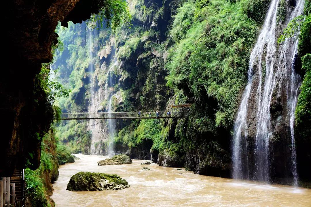 下午,接著游覽距織金洞僅2公里的【織金大峽谷】。峽谷內(nèi)有保護(hù)完好的峽谷、天窗、天坑、暗河、絕壁等地質(zhì)遺跡,特別是高大的天生橋更是一絕,“水上水、洞上洞、橋上橋、天外天”等景觀(guān)被地質(zhì)學(xué)家稱(chēng)為“世界一流的喀斯特景觀(guān)”,可沿懸空棧道或是乘船游覽。