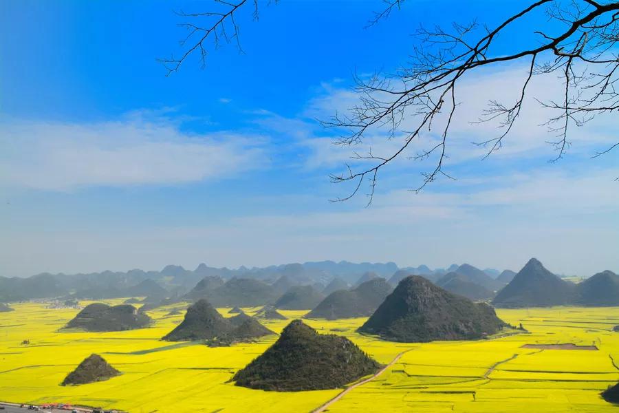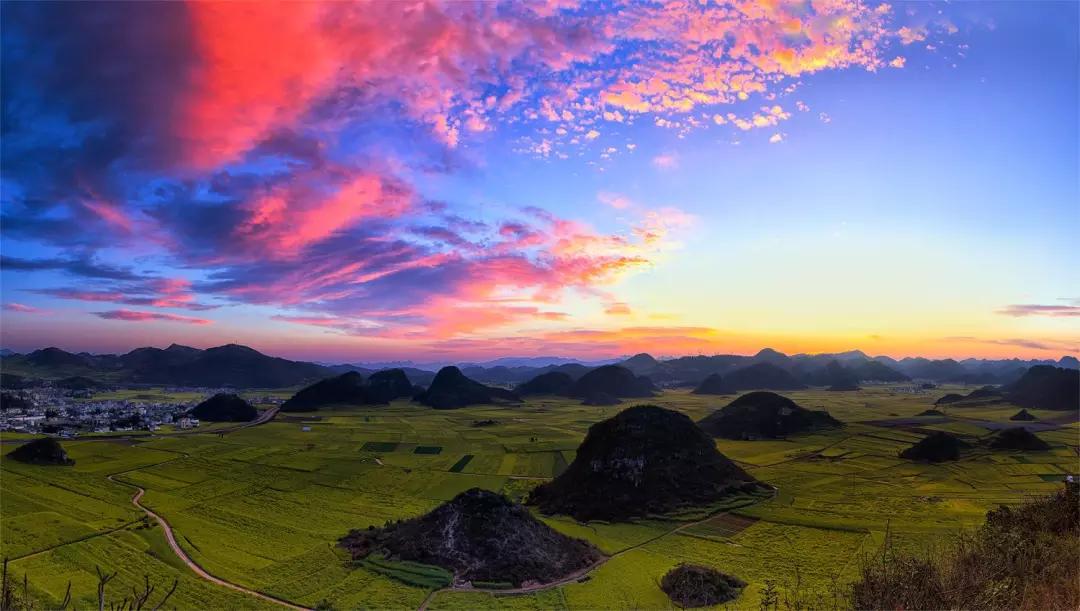 金雞峰在羅平縣城東北方,從羅平縣城沿324國道北東行12公里,有一處數(shù)不勝數(shù)的錐狀的小山叢,錯(cuò)落有致地排列在壩子里,這就是金雞峰叢。金雞峰是拍攝羅平菜花大景的主要地點(diǎn)之一,在日出和日落時(shí)可以拍到非常漂亮的片片。